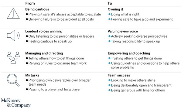 A recent McKinsey article focussed on doing, rather than being: i.e. that action matters more than just saying While the article focusses more on top-down culture, it does include some really excellent examples of transformative behaviours.